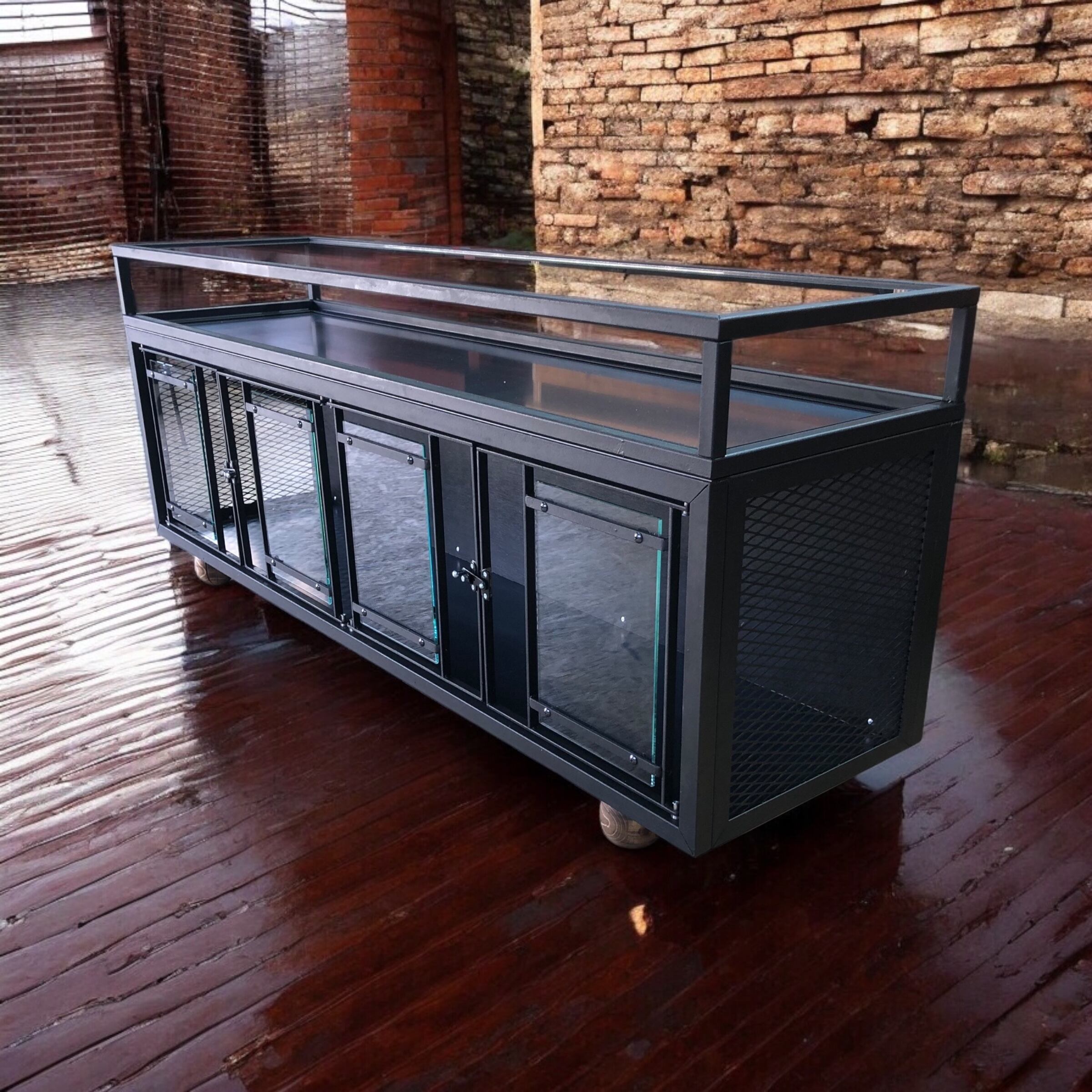 オーダーメイド鉄家具ショーケースキャビネットのご紹介です。スタイリッシュなアイアンフレームが特徴のショーケースキャビネットは、その独自のデザインで空間に洗練された雰囲気を加えてくれます。お洒落なアイテムとして、リビングやオフィス、店舗などさまざまな場所で活躍します。